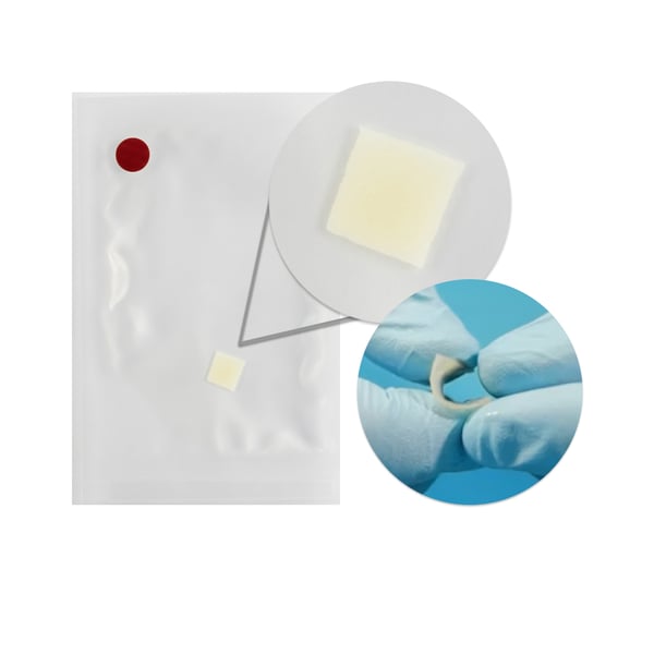 - Product retains enough rigidity to allow it to be easily tucked into a periosteal envelope (as compared to a membrane) and maintains its position during flap closure and suturing Rehydrates quickly and can be easily shaped with scissors or scalpel. Can be tacked or sutured.